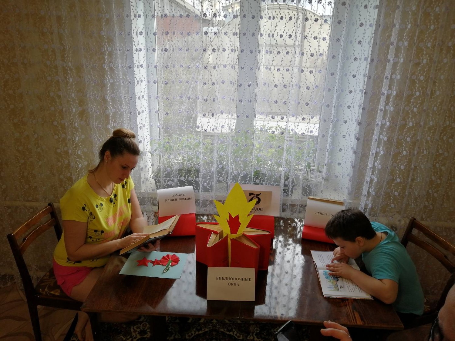 Семья Шелопаевых, участвует в мастер-классе по изготовлению звезды с вечным огнем.