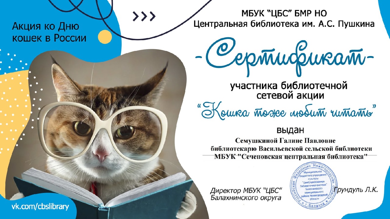 | Васильевская сельская библиотека МБУК "Сеченовская центральная библиотека" Сеченовского района Нижегородской области приняла участие в сетевой акции, организатором которой являлась Центральная библиотека им. А. С. Пушкина МБУК "Центральная библиотечная система" Балахнинского муниципального округа Нижегородской области.